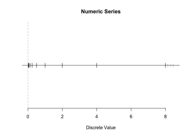 #> 0, 1, 2, 3, 4, 5, ...These objects are referred to as “numeric series”, and have class “discretes”. Their members are referred to as “discrete values”.